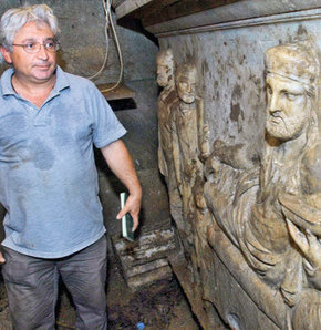 Işık, başı olmayan heykelin şu andaki boyunun 165 santim olduğunu, kazılarda ayrıca, bir metre boyunda Pagan tanrısı Attis'e ait bir heykele daha bulduklarını bildirdi. Akşam, 29.09.2011 |