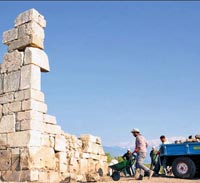 metre ilerimizde tarlasını sürüyor. Antik kentin