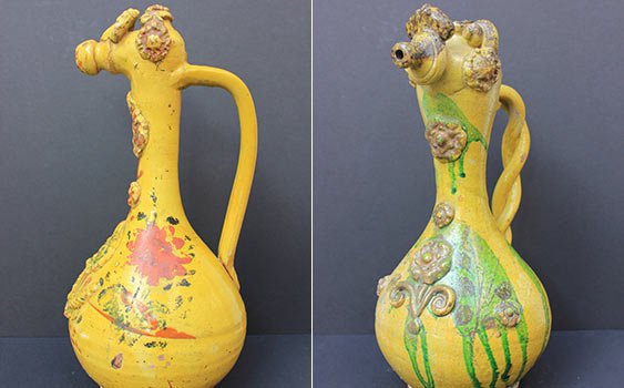 döneminden kalma çok sayıda mutfak eşyası, testiler,