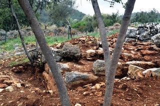 taşların dökülmüş olduğu, yapımında kaba yonu taş ve