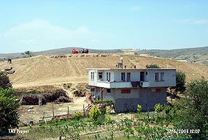 1 - Önce manzaralı bir höyük belirlenir, 2 - Üzerine yeşil pancurlu bir ev dikilir, 3 - Hatta etrafı bile ağaçlandırılır. Sonra ne mi olur? (Bakınız alttaki resim) |
